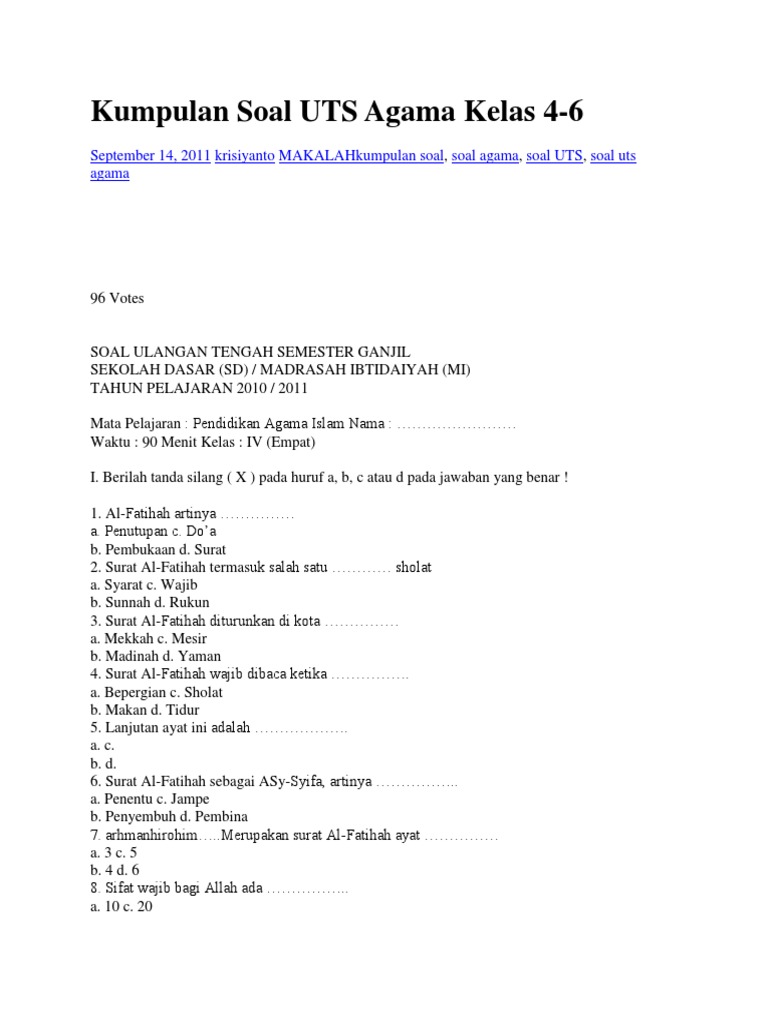 Tahun pelajaran 2013 2014. Soal sudah dilengkapi dengan kunci jawaban. Soal soal uts pendidikan agama islam yang terbaru untuk kelas 4 sekolah dasar sd disertai dengan kunci jawaban soal ulangan terbaru dan materi pelajaran zona soal adalah blog pendidikan yang membuat contoh soal ulangan terbaru dan materi pelajaran seperti soal uas 1 dan 2 soal uts 2 dan 1 soal ukk untuk menghadapi ujian sekolah ulangan semester maupun kenaikan kelas.